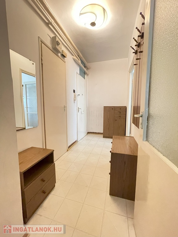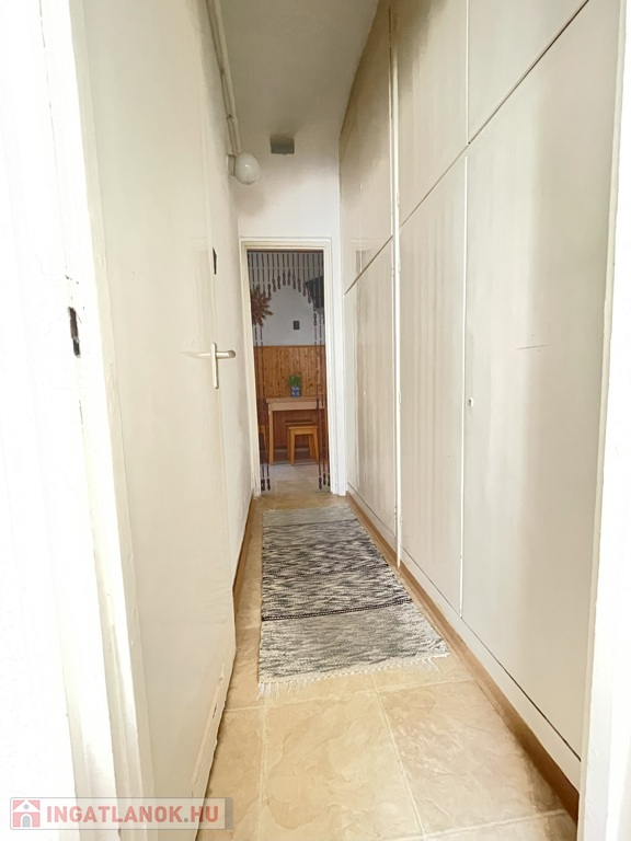A lakás körbejárható, praktikus elrendezésű. Az előszobából külön nyílik a nappali és a konyha, a hálószoba a nappaliból és a folyosóról is megközelíthető. A folyosón nagy méretű beépített szekrény található. A fürdőszoba és a WC külön helyiségben van.