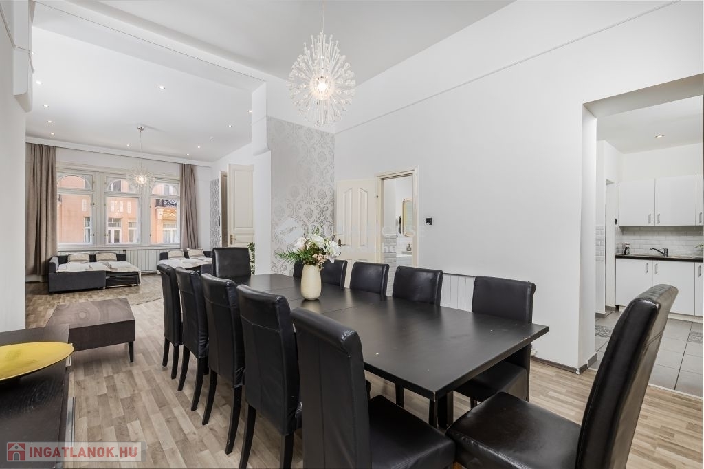 Figyelem! Igazi kuriózum! 5. kerület közkedvelt részén!Eladásra kínálunk az 5. kerület, híres Semmelweis utcában, egy gyönyörűen felújított, 2. emeleti, napfényes lakást.Aki egy modern, jól felszerelt és kiváló helyen levő lakást keres Budapest szívében, ne keressen tovább.Ez az ingatlan minden szempontból ideális választás, legyen szó befektetésről vagy éppen egy új otthon létrehozásáról.A lokációt tekintve az ingatlan környéke dinamikus és élettel teli. A belvárosi helyszín számos kulturális és szabadidős lehetőséget rejt magában. A közelben található éttermek, kávézók és üzletek biztosítják, hogy minden megtalálható legyen egy karnyújtásnyira.Az ingatlan nemcsak világos és barátságos hangulatával hívogat, de egy különleges lehetőséget is rejt magában.Az ingatlanban üzemeltető által szálláshely szolgáltatás működik, amely a jelenlegi szabályozás szerint engedélyezett és a továbbiakban is hasznosítható. Ingatlan tulajdonos váltás esetén is.Az üzemeltető által kezelt kiadási folyamat maximális kényelmet és gondtalan használatot ígér az új tulajdonos számára.Az ingatlan hosszútávú kiadásra is alklalmas, hiszen sokáig egy értékálló ingatlan lesz az Ön tulajdonában.Így tökéletes választás befektetére is, illetve saját otthonnak is.Az ingatlan teljes berendezéssel kerül átadásra, így Önnek csak a bőröndjeit kell magával hoznia.Az ingatlan alapterülete 130nm. Elosztása:3 külön nyíló szoba, az egyikben gardrób is található, 2 külön nyíló fürdőszoba, konyha, hall, nappali..Az ingatlanban cirkó fűtés van.Egyedülálló lehetőség jelenleg a piacon, ne maradjon le róla!További információért hívjon!