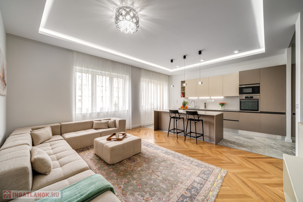 Located in one of Budapest’s most elegant streets, Falk Miksa Street, this fully renovated, 101 m² luxury apartment is offered for sale on the 4th floor of a classical, well-maintained building with elevator.