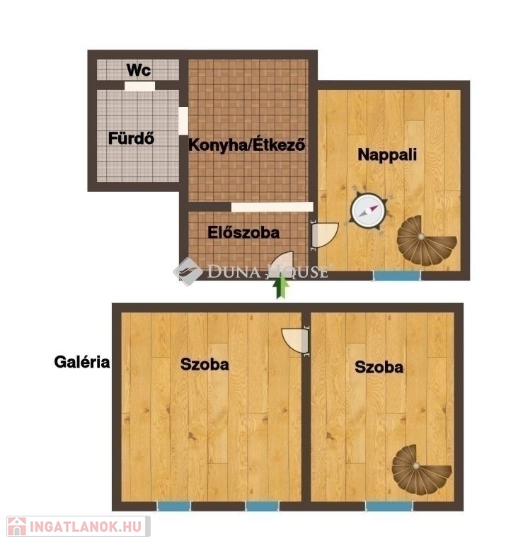 -a nagy belmagasságnak köszönhetően kialakított galérián két teljes értékű hálószoba található (2,6 m belmagasság)