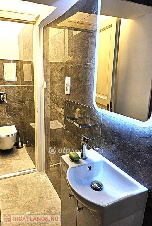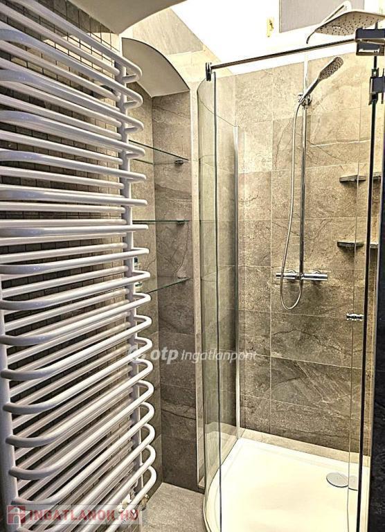 Elosztása: konyha, fürdőszoba, kamra, nappali és hálószoba. Közel 4 méteres belmagasságának köszönhetően, esztétikusan galériázható, akár belső 2 szintes lakássá alakítható. Főbb jellemzők: modern, felső kategóriás gépekkel felszerelt konyhabútor, a hálószobában világítással ellátott beépített szekrény, egyedi design radiátorok, klímaberendezés, korszerű cirkó kazán fűtés, hatalmas ablakok, elektromos redőnyök.