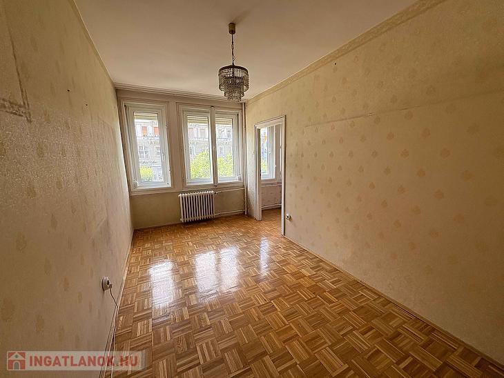 Eladó egy 58 négyzetméteres, háromszobás lakás Budapest 7. kerületében, a Károly körúton, liftes társasház első emeletén.