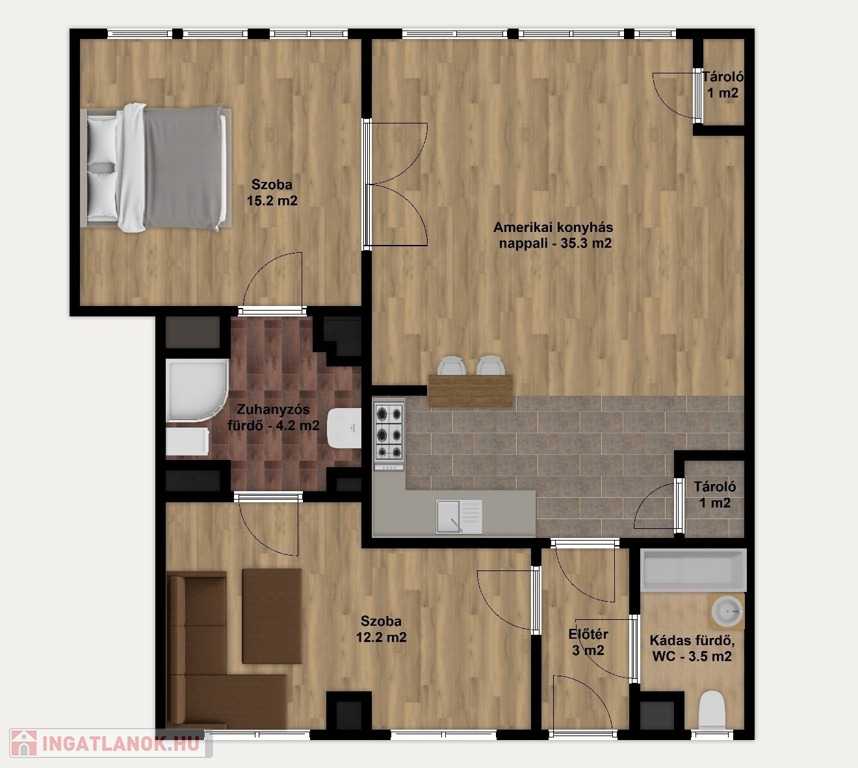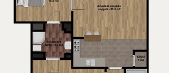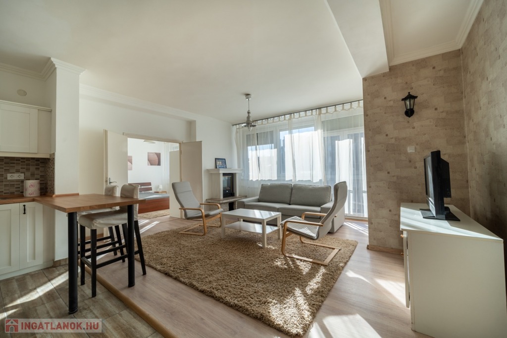 Komplett bútorozott és gépesített, a konyha mosogatógéppel és mikróval is felszerelt, de spájz és egyéb tárolóhelyek is kialakításra kerültek, a jelenlegi bérlők befektetési vásárlás esetén szívesen maradnának az ingatlanban.