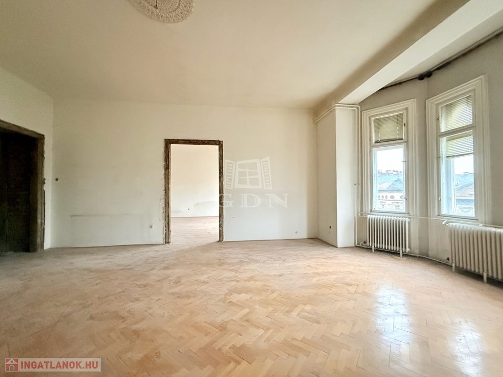 Eladásra kínálok egy 130 m²-es, 4. emeleti, délnyugati tájolású lakást egy karakteres belvárosi liftes társasházban. Az ingatlan teljesen visszabontott állapotban van, a képeken is látható módon.