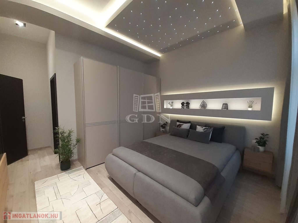 Tágas nappali, két hálószoba, modern konyha, két fürdőszoba (kádas és zuhanyzós), valamint külön vendég WC került kialakításra.