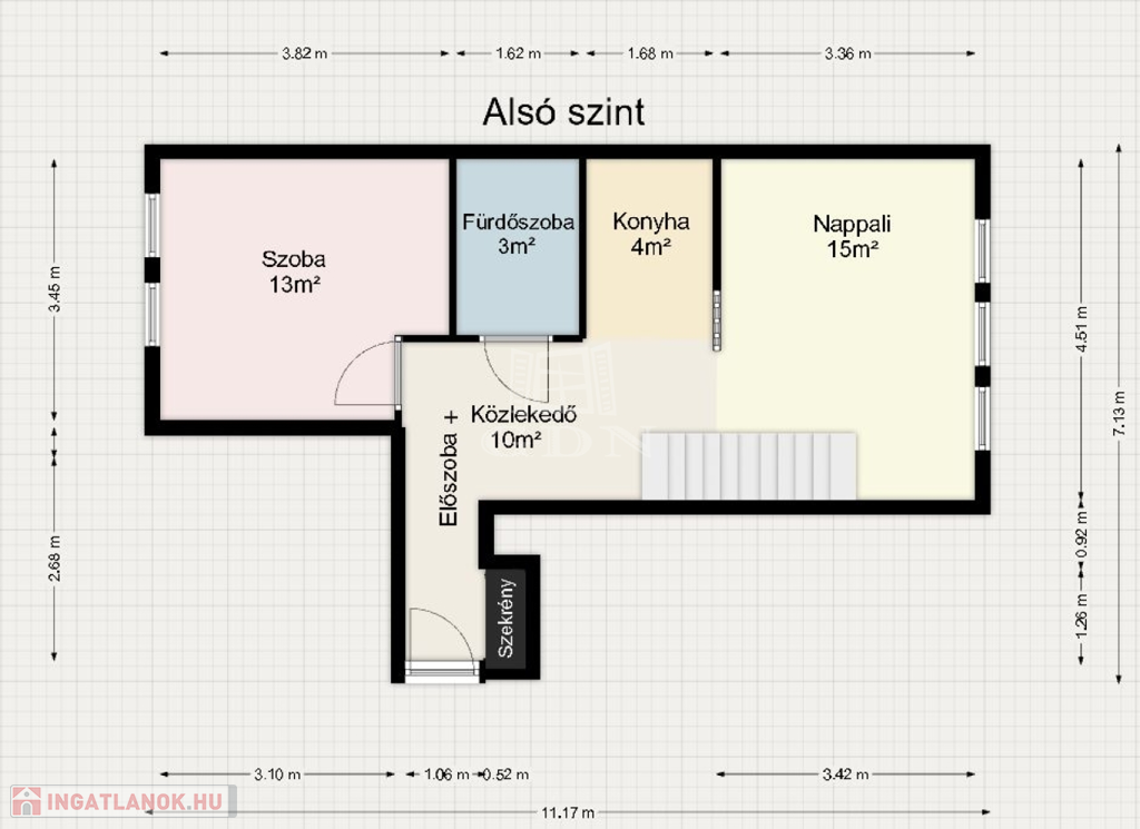 A 74 négyzetméteres ingatlan a 2. emeleten helyezkedik el.