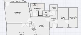 A két félszoba rugalmas kialakítást tesz lehetővé, akár gyerekszobának, vendégszobának vagy dolgozószobának. A tágas nappali a közös élet központja lehet.