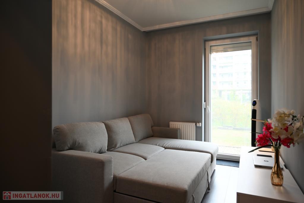 Eladó egy 2019-ben épült, modern, energiatakarékos földszinti lakás a népszerű Metrodom Parkban, mindössze pár perc sétára a 3-as metró vonalától.