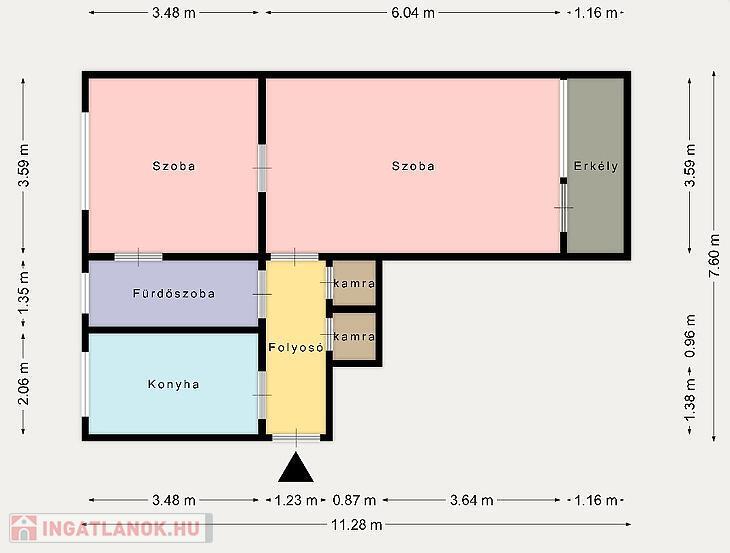 Tárolásra a lakáson belül egy kamra áll rendelkezésre.