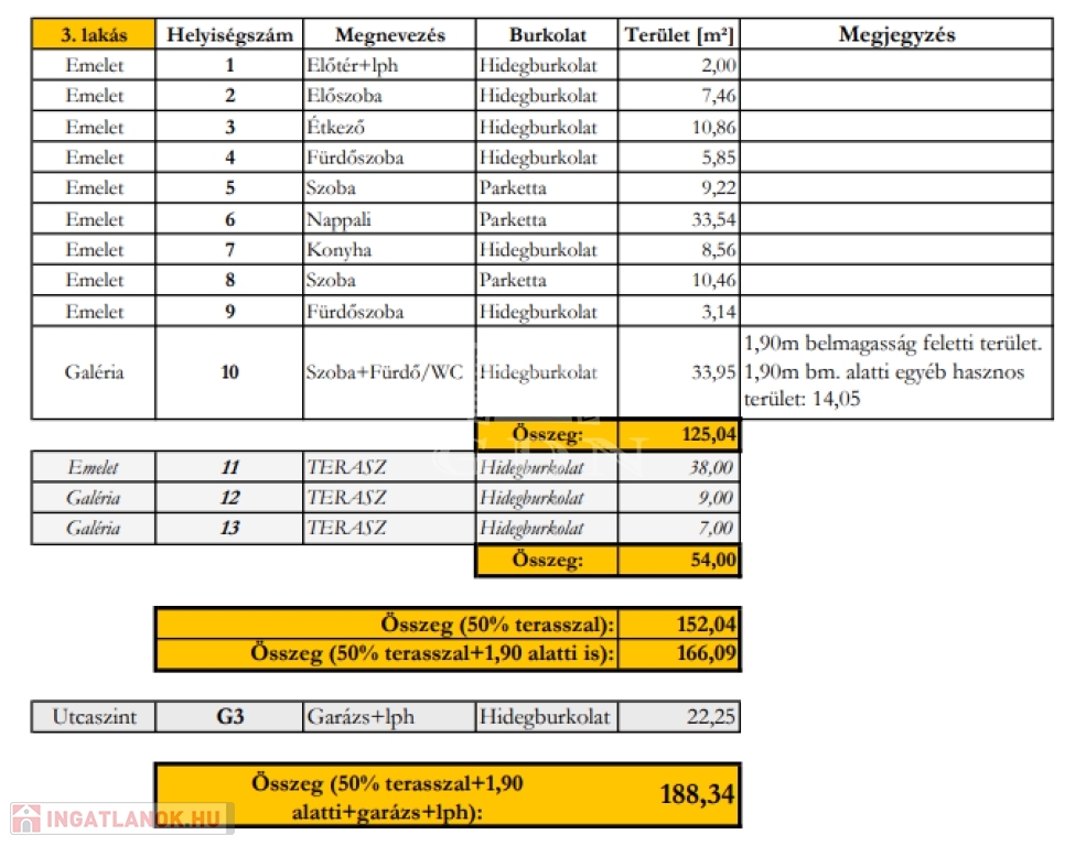 - saját lépcsőház rész: 6 m2 (a fotók között szerepeltetett helyiség listában található felsorolás az irányadó))