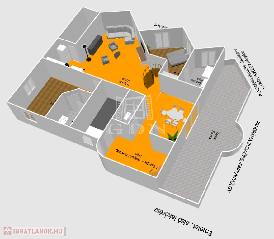 - Teraszok: 54 m2,