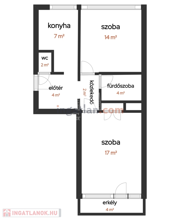 - konyha, gépesített beépített konyhabútorral (7m2)