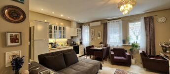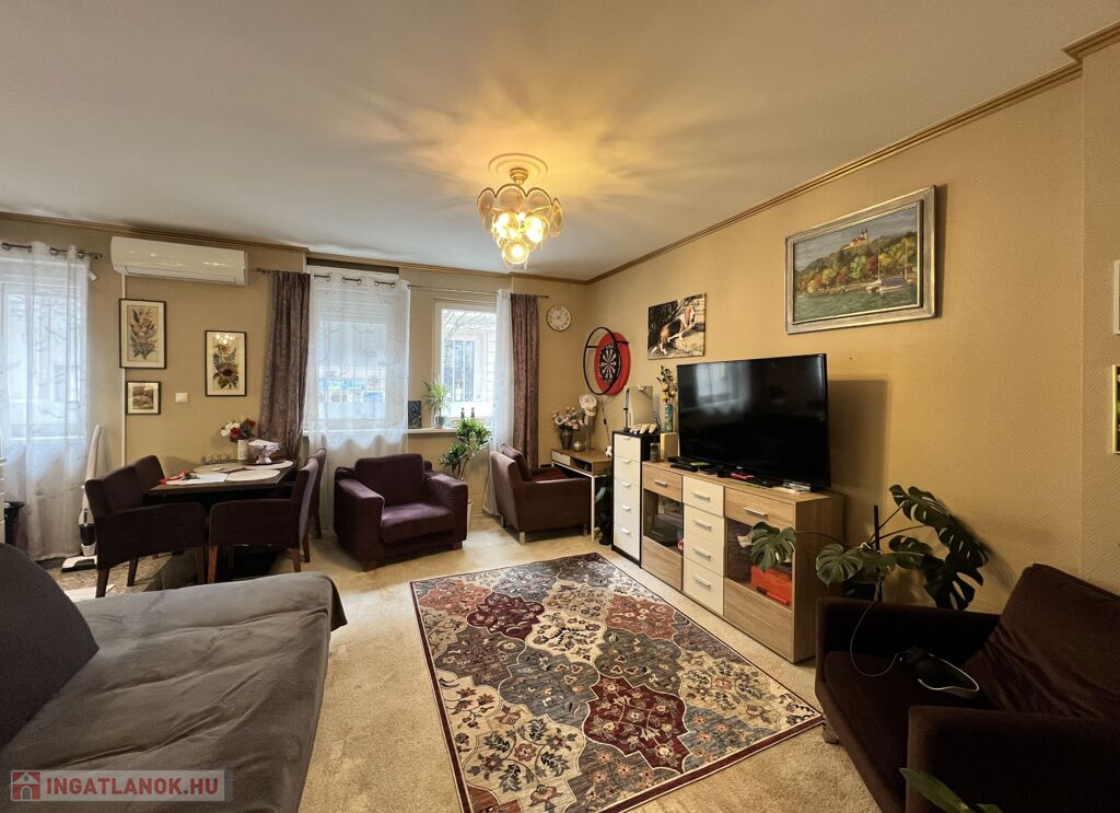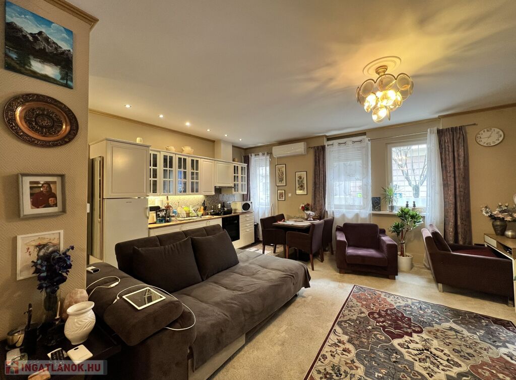 Thurzó park mellett egy 48 nm2 földszinti lakás. Az amerikai konyhás nappali déli fekvésű,ablakai az utcára néznek.