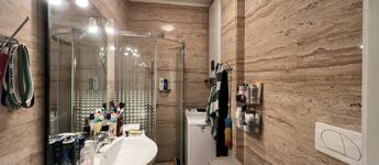 A fürdőszoba minőségi márvány burkolatú,a konyhába IKEA konyhabútor