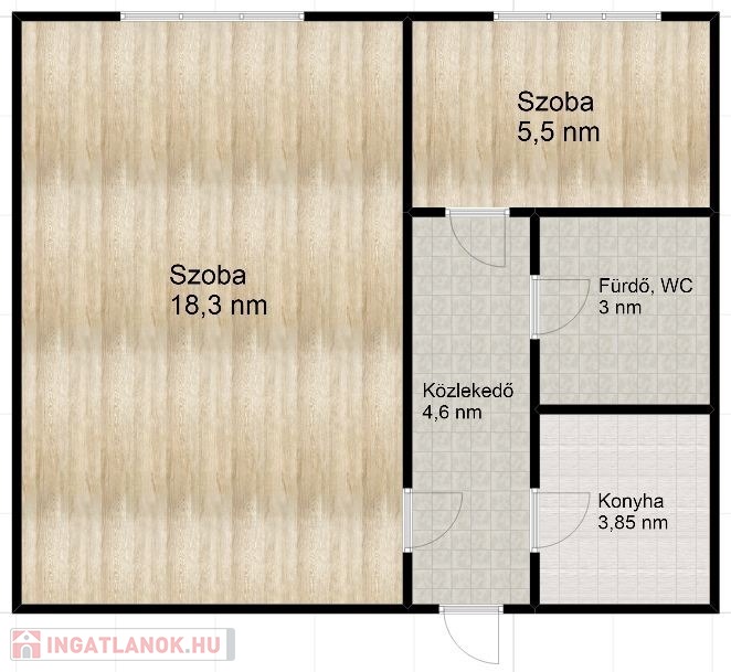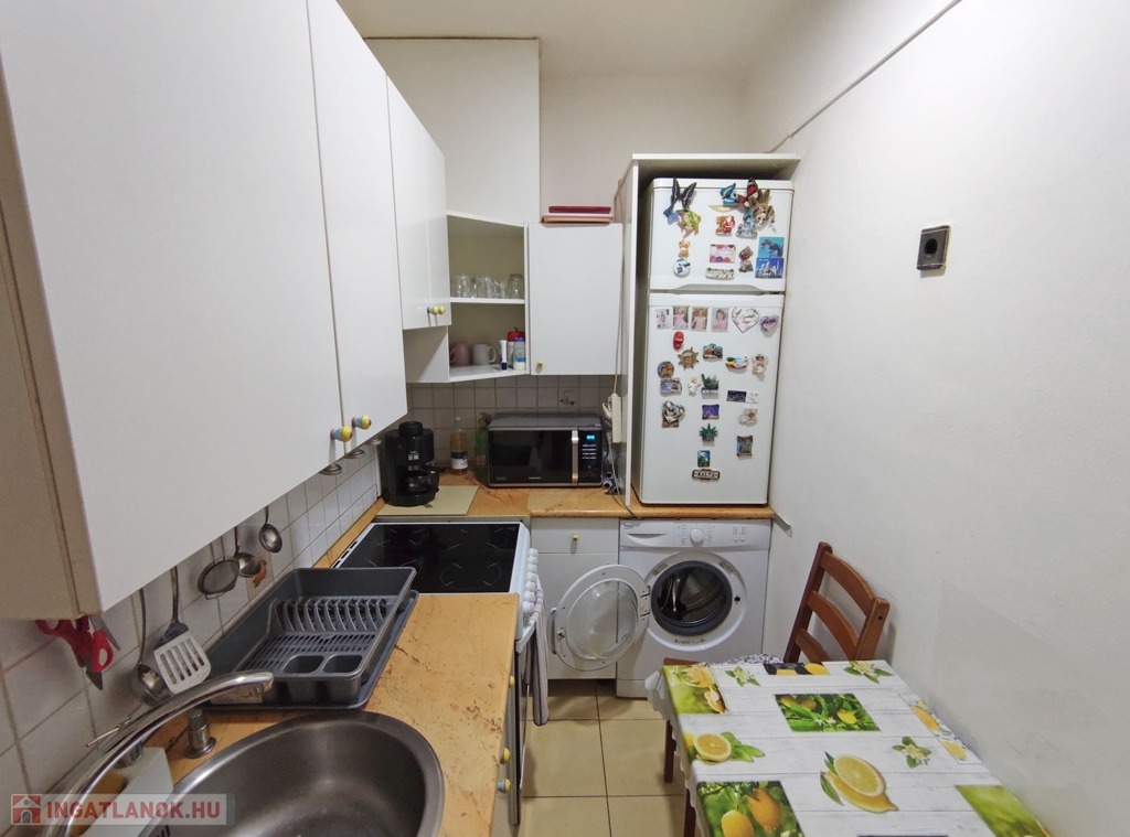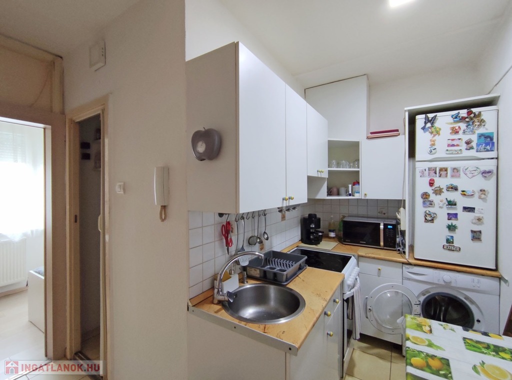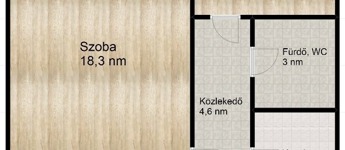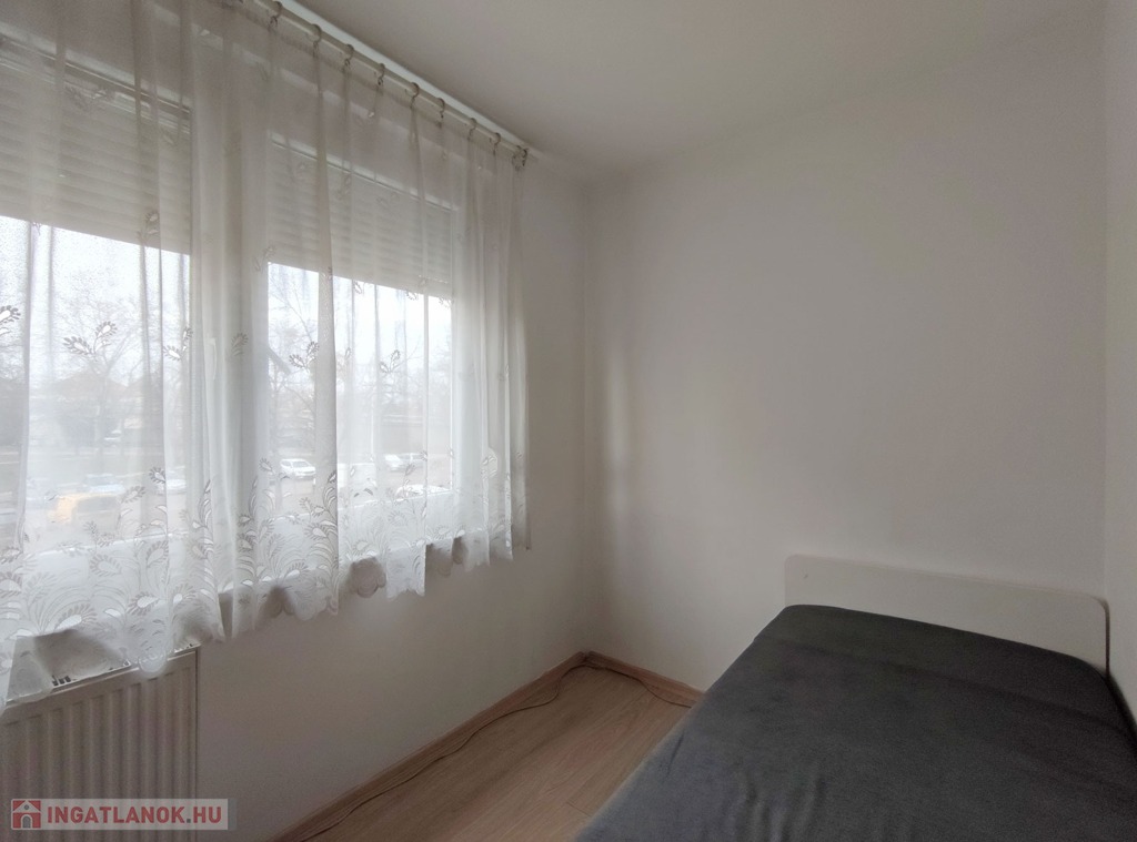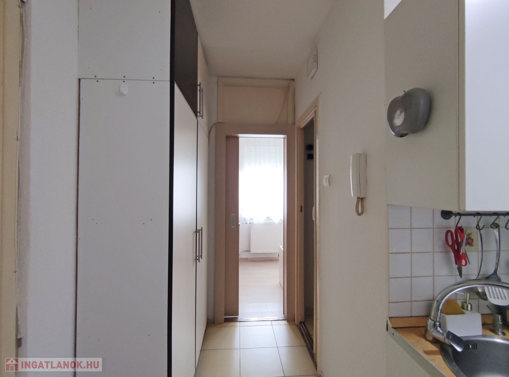 A lakásba korszerű, újszerű, több ponton záródó biztonsági bejárati ajtón keresztül jutunk be. Belépve balra a 18 nm-es, laminált parkettás, karbantartott nappalit találjuk, a bejárattól jobbra pedig a jó állapotú, járólapos, jól felszerelt konyhabútoros, 3 nm-es, járólapos konyhába juthatunk. A járólappal burkolt 3,66 nm-es közlekedőben a bejárattól jobbra a 3 nm-es járólapos, csempézett, közepes állapotú, WC-s, kádas fürdőszobába érkezünk. A fürdő után a közlekedő végében nyílik a 7,3 nm-es, laminált parkettás hálószoba.