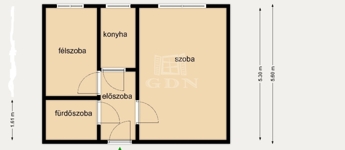 Előszobából balra a fürdőszoba, majd a hálószoba