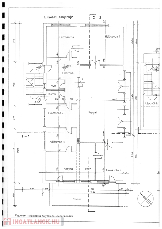 előszoba, közlekedő, nappali(66m2) konyha+étkező(24m2), 4 szoba(12m2, 12m2, 24m2, 16m2), fürdőszoba+Wc, Wc, gardrób(4m2), terasz(27m2).