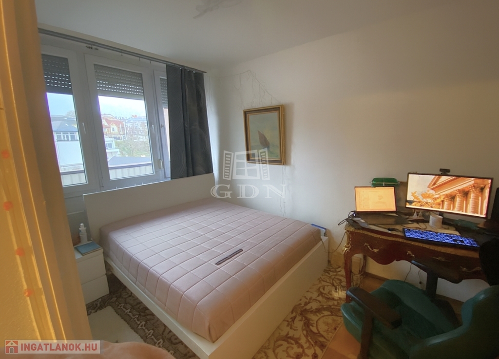 A lakás KLIMATIZÁLT, világos helyiségekkel, beépített szekrényekkel rendelkezik, elrendezése nagyon praktikus.