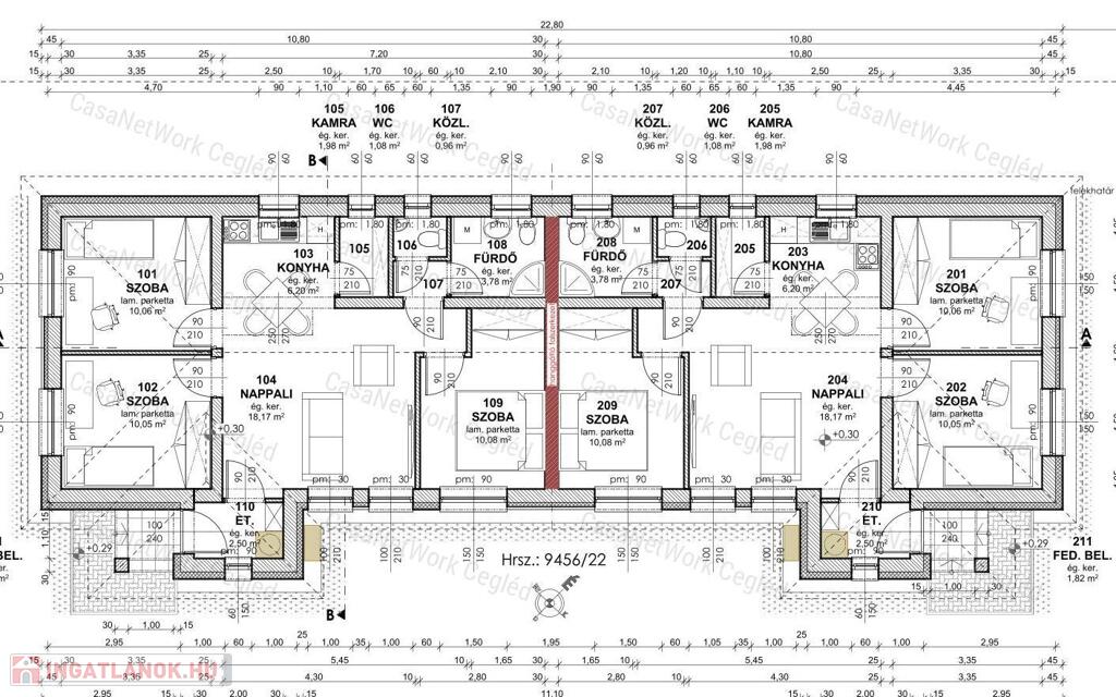 A CASANETWORK CEGLÉD eladásra kínálja a 174602185-ös számú, új építésű ikerház egyik felét Cegléden, a kétlakásos ingatlan I. lakását. Az ingatlan várható átadása 2026.