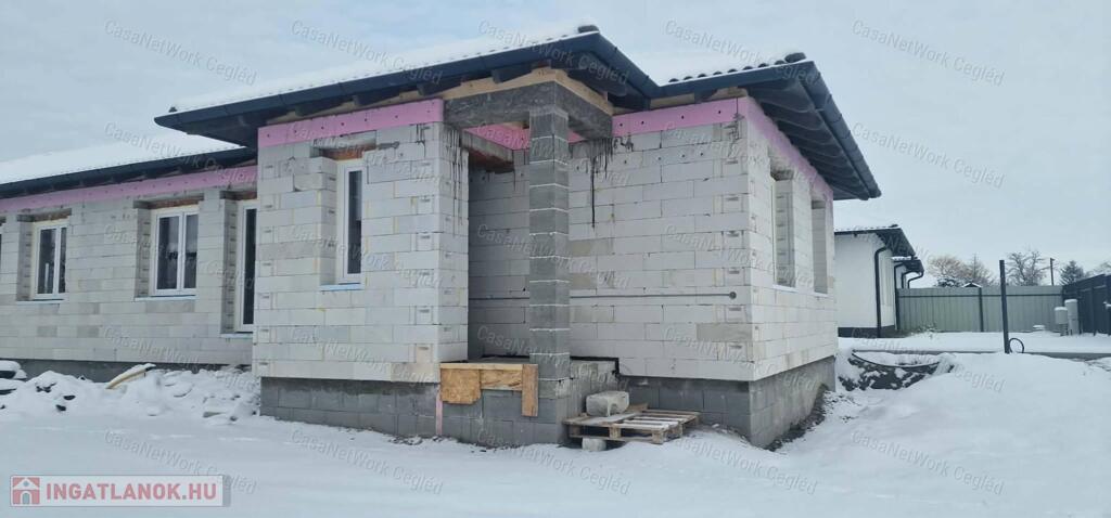 Az ingatlan viablokk falazattal épül, fa gerendás (fenyő) födémmel, a padlástér tárolásra alkalmas. A tetőszerkezet hagyományos ácskötésekkel és csavaros rögzítésekkel készül, fogópárokkal. A belmagasság 2,7 méter. A fűtést kondenzációs gázkazán biztosítja padlófűtéssel az egész házban, a nappaliban egy darab hűtő-fűtő klíma kerül elhelyezésre. A hálószobák laminált padlóval, a többi helyiség járólappal burkolt. Hő- és hangszigetelt műanyag nyílászárók, valamint MDF dekorfóliázott beltéri ajtók kerülnek beépítésre. Parkolás a saját udvarrészen megoldott, két autó számára, a beálló és a járda viacolor térkő burkolattal készül. A két lakás teljesen külön bejárattal, külön udvarrésszel és beállóval rendelkezik. A tervek alapján az ingatlan CSOK+ hitelre alkalmas lesz. Az alaprajzok megtekintése és további információk kizárólag előre egyeztetett időpontban a CasaNetwork ceglédi irodájában lehetséges.