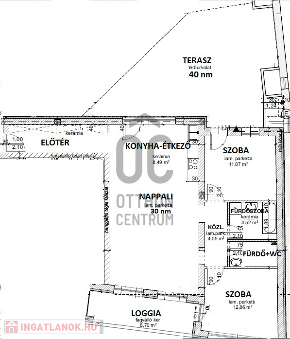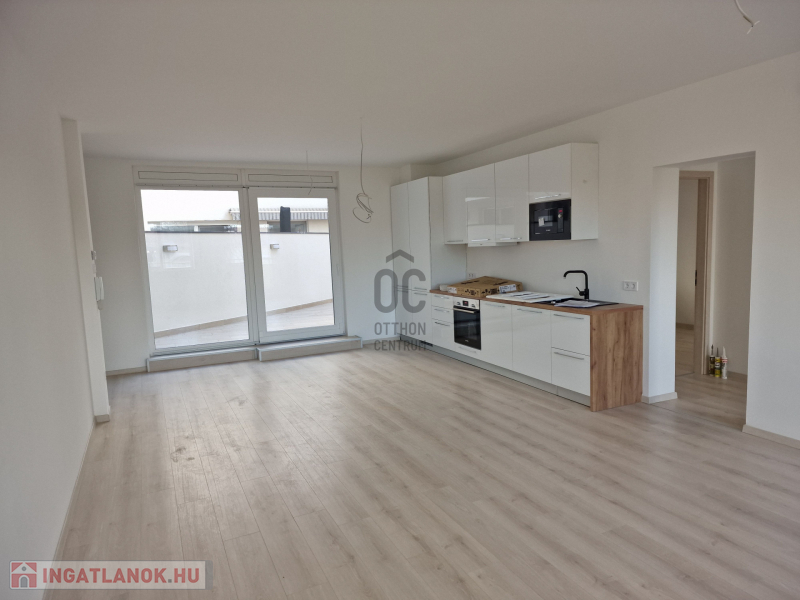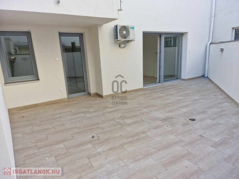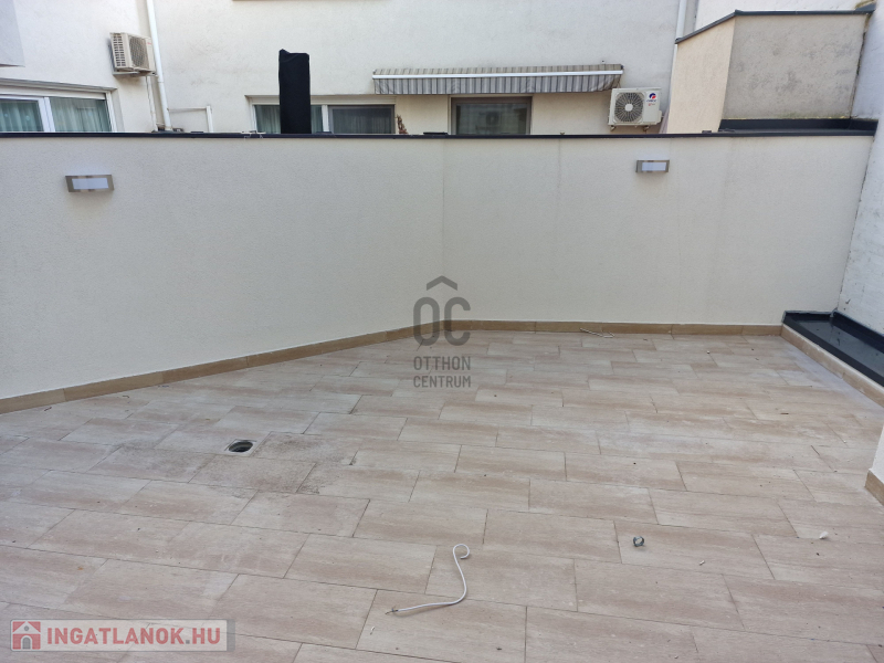 Debrecen, Belvárosának szívében, 2022-ben, magas műszaki tartalommal megépült, egyedi megjelenésű, liftes társasház 1. emeletén eladó, 81,2 nm-es, nappali-étkező-konyha + 2 szobás, 2 fürdőszobás, luxus lakás, 40 nm-es terasszal + 8 nm-es erkéllyel. Jellemzők: Egyedi tervezésű konyhabútor beépített gépekkel, (főzőlap, sütő, mikró, elszívó, hűtő-fagyasztó), elektromos redőnyök, 2 fürdőszoba-WC, 3 klíma, prémium kategóriás burkolatok, 3 rétegű üvegezésű nyílászárók.