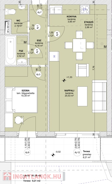 - Háló helyiségek meleg burkolatot kapnak, nappali, közlekedõ, vizes helyiségek hideg burkolatot