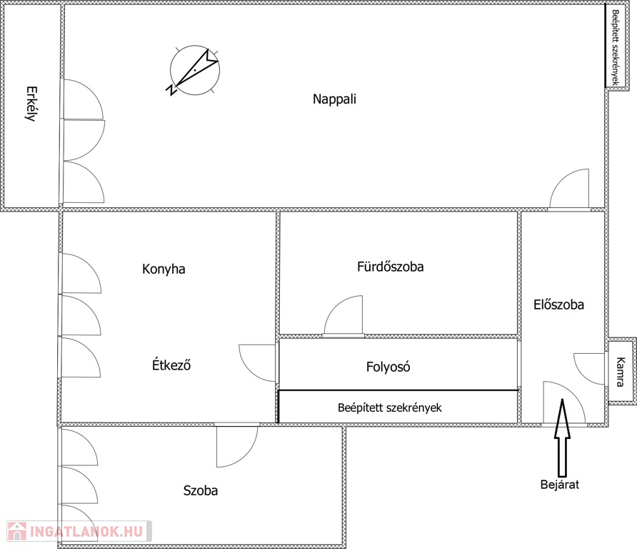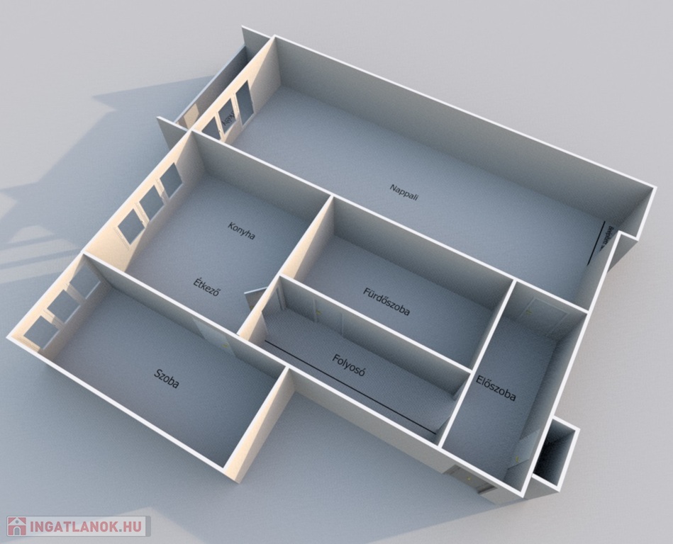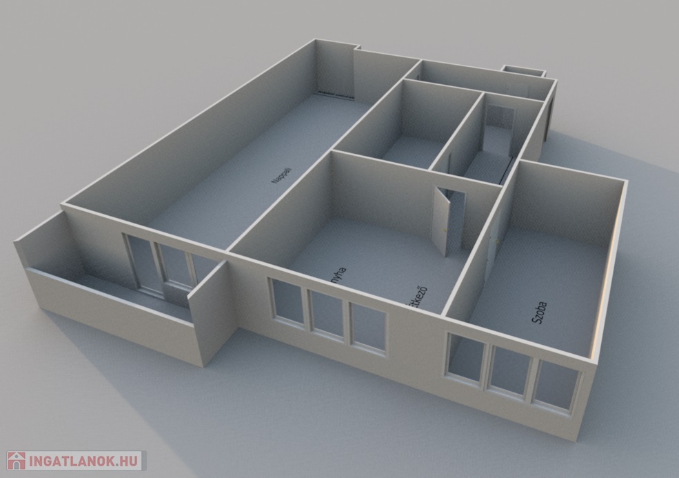 - Helyiségei: előszoba, konyha, kamra, nappali, szoba, fürdőszoba + WC.