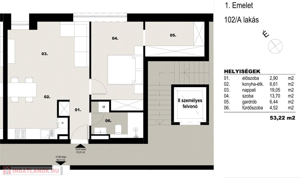 Ezen kívül a lakás egy hálószobából nyíló gardróbot is kínál, amely rendkívüli tárolási lehetőséget biztosít. Ha egy modern, kényelmes és igényes otthont keres Debrecen szívében, ne hagyja ki ezt a lehetőséget!