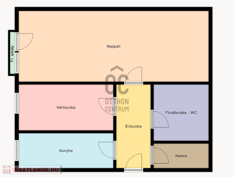 - 42 m2-es, 2 külön nyíló szobás