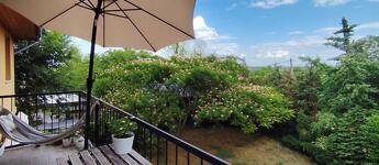 A lakáshoz tartozik egy saját használatú, 300 nm-es kert és egy gépkocsi beálló is.