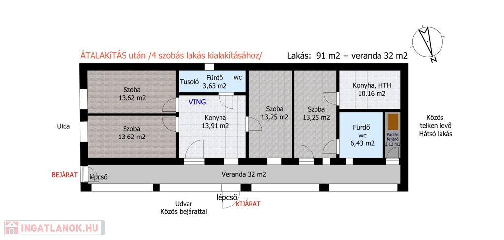 A helyiségek mérete és elrendezésre lehetővé teszi akár 3-4 normál méretű szoba kialakítását, melyről készítettem egy rajzot, ha érdekli tekintse meg!