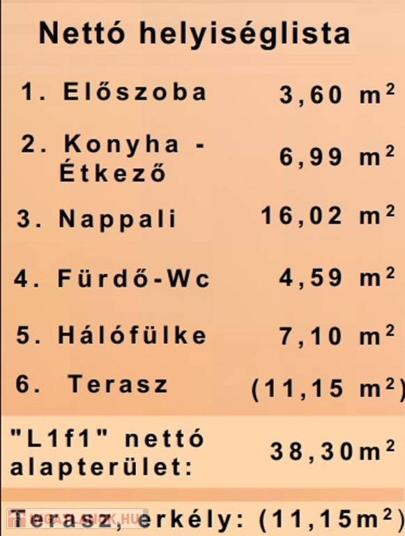 38,3 nm lakás + 11,15 nm terasz+ 12,4 nm kertkapcsolat! (L1f1)