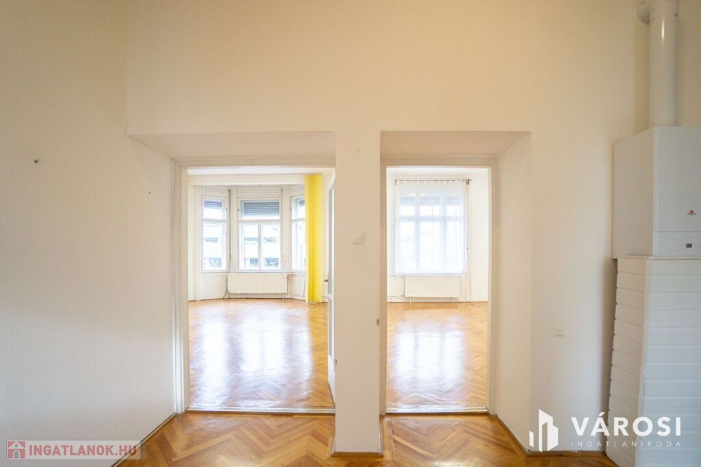 Elosztása szerint: 1 hatalmas nappali, 1 nagyméretű szoba, 1 félszoba, konyha, étkező, fürdőszoba, wc, kamra, előszoba, helyiségekből áll. Az ingatlan átlagos állapotú, de számos lehetőséget rejt magában, hogy saját ízlésére formálja. A régi nagypolgári lakásokban talán az a legizgalmasabb, hogy ízlés szerint formálhatók szinte bármilyen stílusúra, a lofttól a klasszikusig, a minimáltól az eklektikáig bármi szóba jöhet. Így ez is tökéletes megoldást kínál azok számára, akik értékelik a klasszikus stílust, a központi fekvést és a kényelmet.
