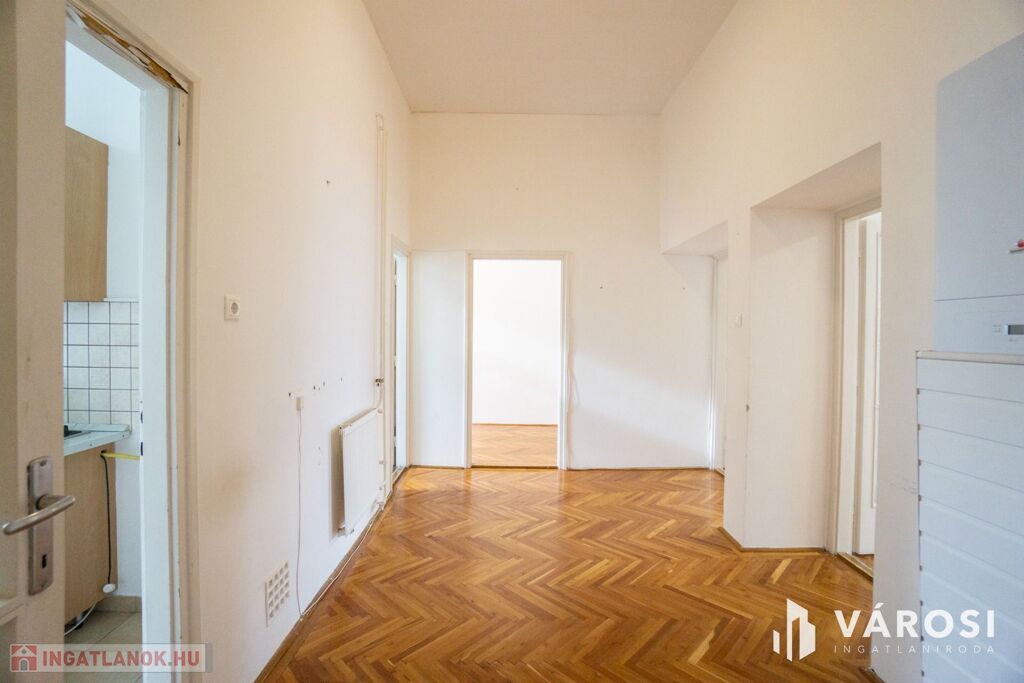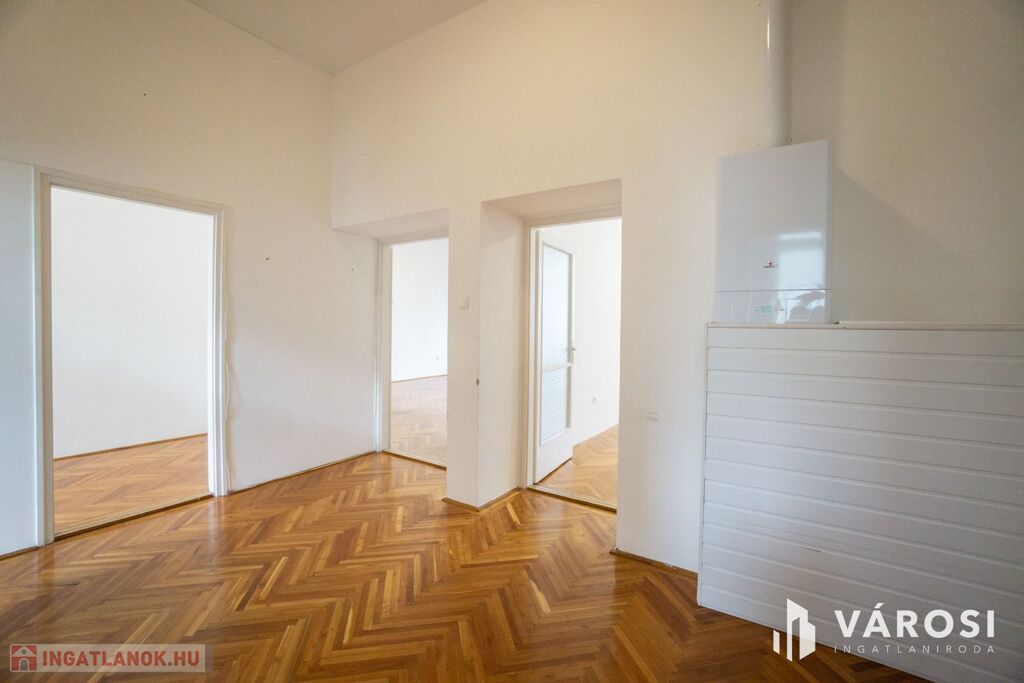 Győr történelmi belvárosában, az egyik legszebb belső udvarral rendelkező, három szintes épületében található ez a második emeleti, 94 m²-es, tágas és világos lakás.