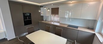 Egyedi, helyszínen készült konyhabútor, magasfényű frontokkal és BOSCH gépekkel