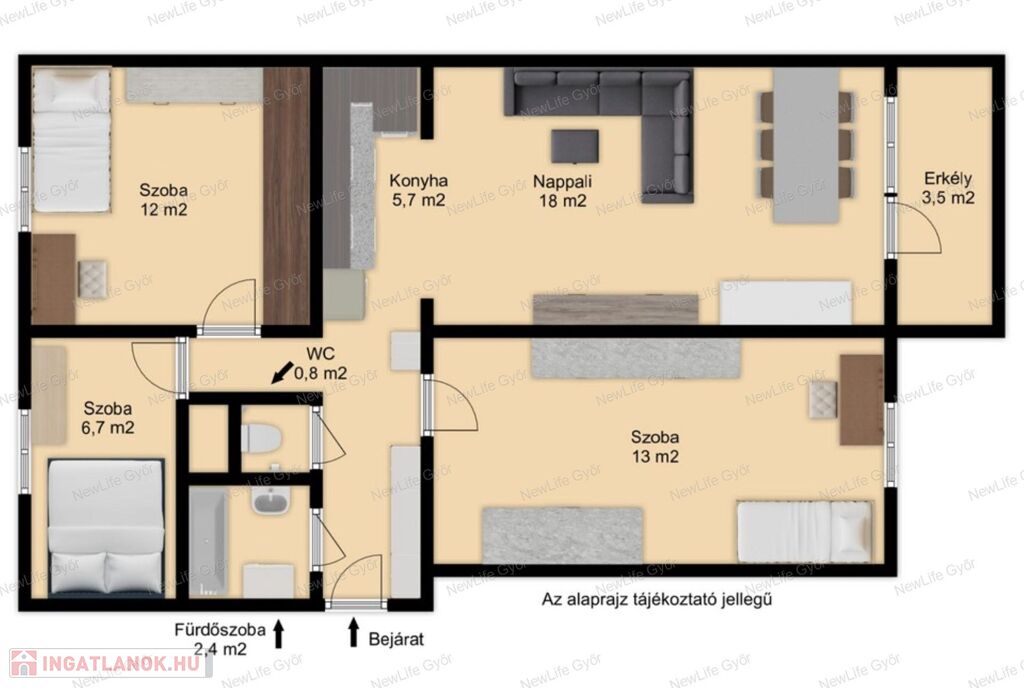 A jelen hirdetésben rögzített, az ingatlannal kapcsolatos adatok, információk az Eladó/Megbízó tájékoztatása alapján kerültek meghatározásra.