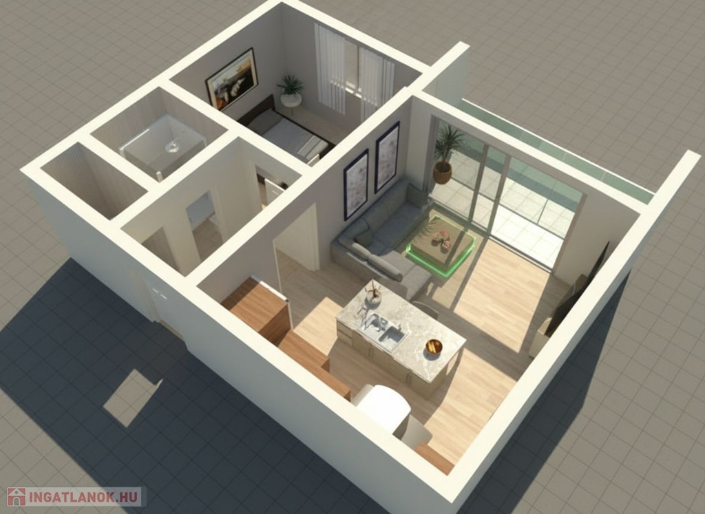 Győr-Nádorvárosban 25 lakásos liftes társasház első emeletén, 49 m² hasznos alapterülettel, 12,21 m2-es szobával és tágas nappali + konyha + étkező kialakítással, különálló fürdőszobával és toalettel, valamint 8,36 m²-es terasszal rendelkező, prémium minőségű, ÚJ ÉPÍTÉSŰ lakás eladó.