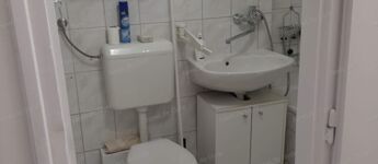 Lakásban a bejárati ajtó 5 ponton záródó műanyag. A bejáraton belépve egy folyosóra érkezünk,ahonnan jobbkéz felől egy kis kamra,illetve a fürdőszoba található. A fürdőben kád lett elhelyezve, illetve itt van a wc is.