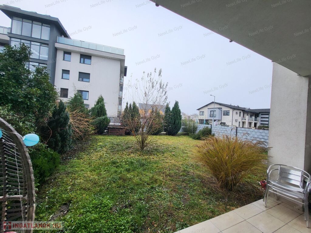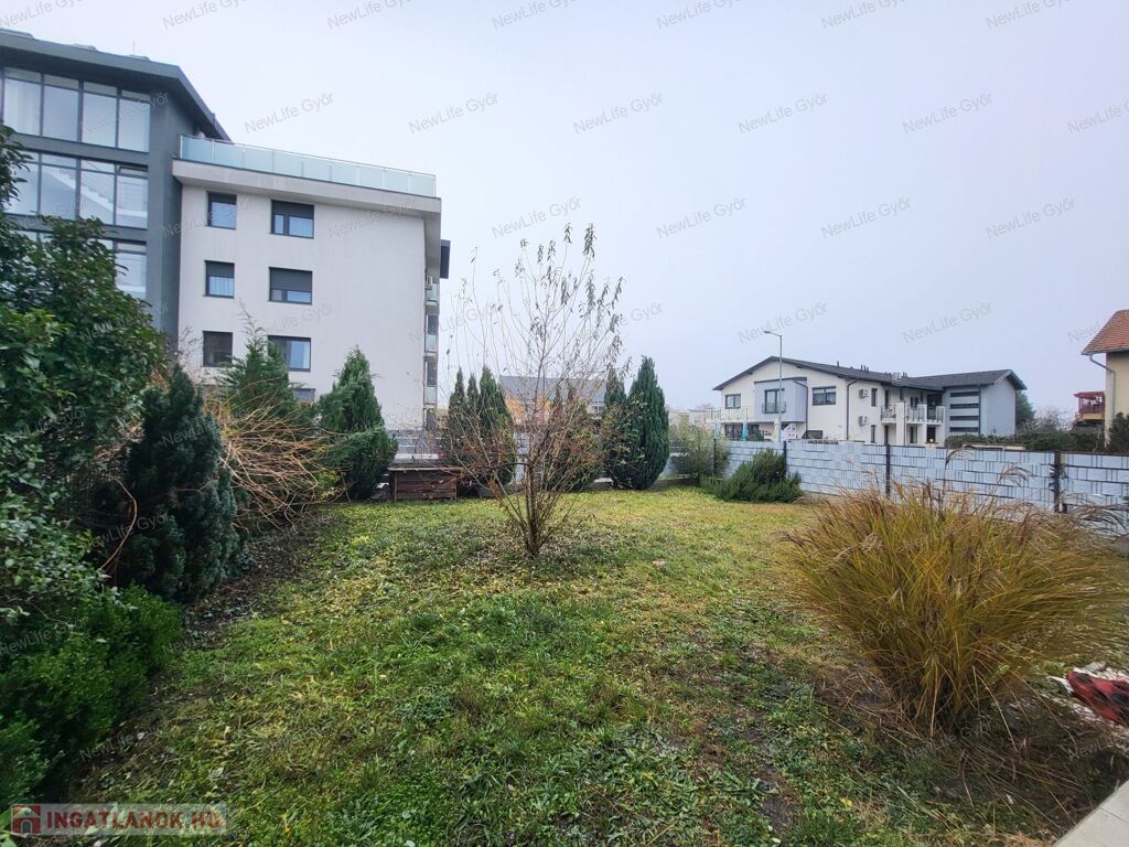 Újszerű, kertkapcsolatos, FÖLSZINTI lakás eladó Győr–Révfalu frekventált részén – saját parkolóval