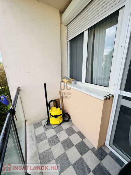 A lakáshoz loggia is tartozik, ami egy olyan erkély, ami nem lóg ki az épület homlokzati síkjából, tehát, jobban védett.