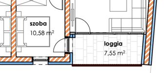 A 1 db amerikai konyhás nappalival, 1db hálószobával, 1 db fürdőszobával, közlekedővel, loggiával rendelkezik.