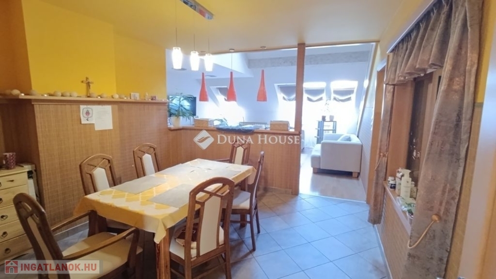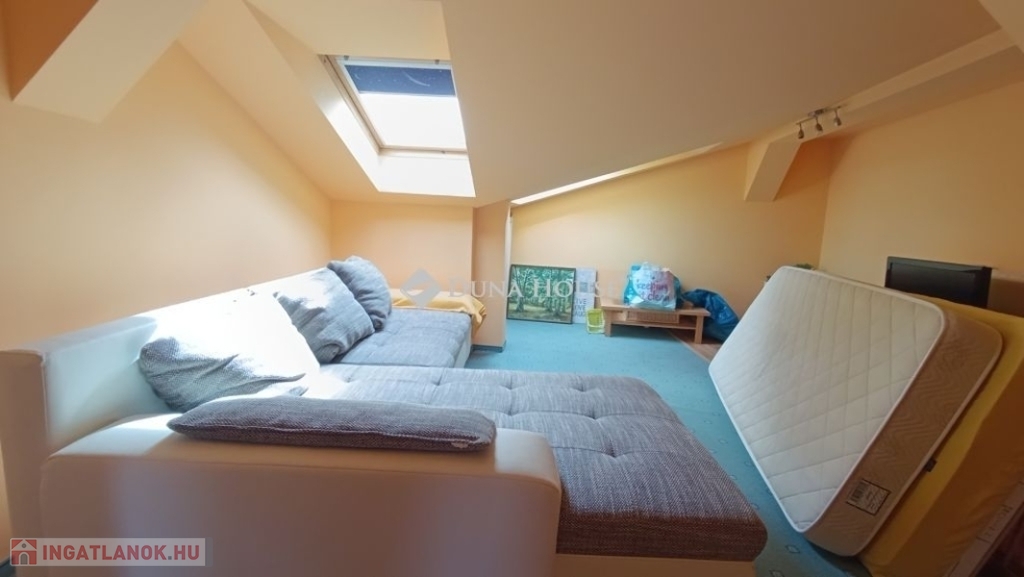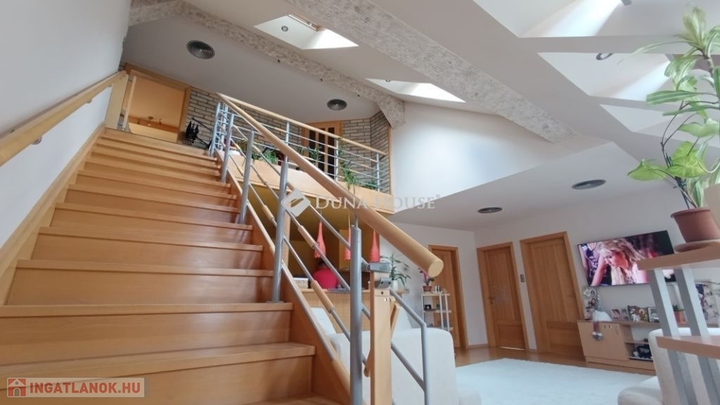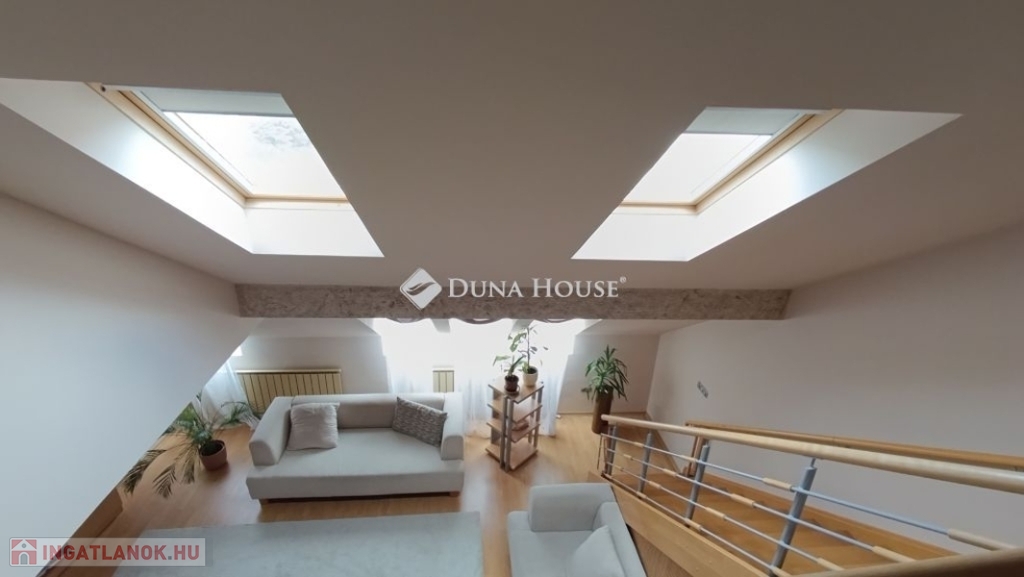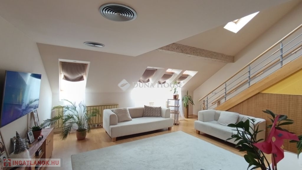 Egyedi belvárosi lakás Mohács szívében.A 127m2-es tágas tetőtéri két szintes lakás várja új tulajdonosát. Miért jó a belvárosban lakni ?Mert minden egy karnyújtásnyira van , hivatalok, boltok, bankok, piac.De a Duna is csak pár lépés, ha esti sétára indulnánk.Ahogy belépünk a lakásba kényelmesen bepakolhatunk egy egész falat elfoglaló praktikus beépített szekrénybe.Innen nyílik a a konyha, és az étkező amit egy pult választ el a hatalmas nappalitól.A nappali különleges belmagassága, bevilágító ablakai miatt napfényes különleges hangulatot áraszt.A fürdőszobában nagy sarokkád, és hangulatos fürdőszobabútor nagy tükörrel várja új tulajdonosát.A wc külön helyiségben van.A hálószoba körablaka extra megjelenést kölcsönöz a helyiségnek. A földszinten még egy szoba van.A hangulatos lépcsőn juthatunk fel a galériás emeleti helyiségekbe, itt két szoba van.A galérián kapott helyet a klíma is így kellemes hőmérsékletet biztosít nyáron is a lakásban.Ajánlom ezt a lakást, családoknak hiszen több szoba van és itt mindenki elfér.Az idősebb korosztály számára is megfelelő lehet hiszen lift van a lépcsőházban.Ne hagyja ki ezt a különleges lehetőséget, hogy otthonává tehesse ezt a fényűző tetőtéri lakást.