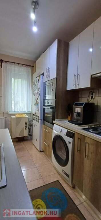 A fürdőszoba és a WC külön helyiségben található, a konyha korszerű beépített bútorral rendelkezik.