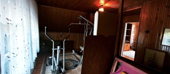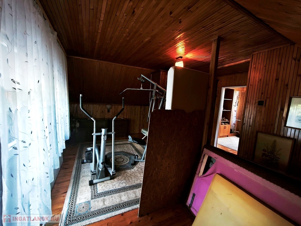 Alsó szinten: nappali, konyha, fürdőszoba, WC, kamra