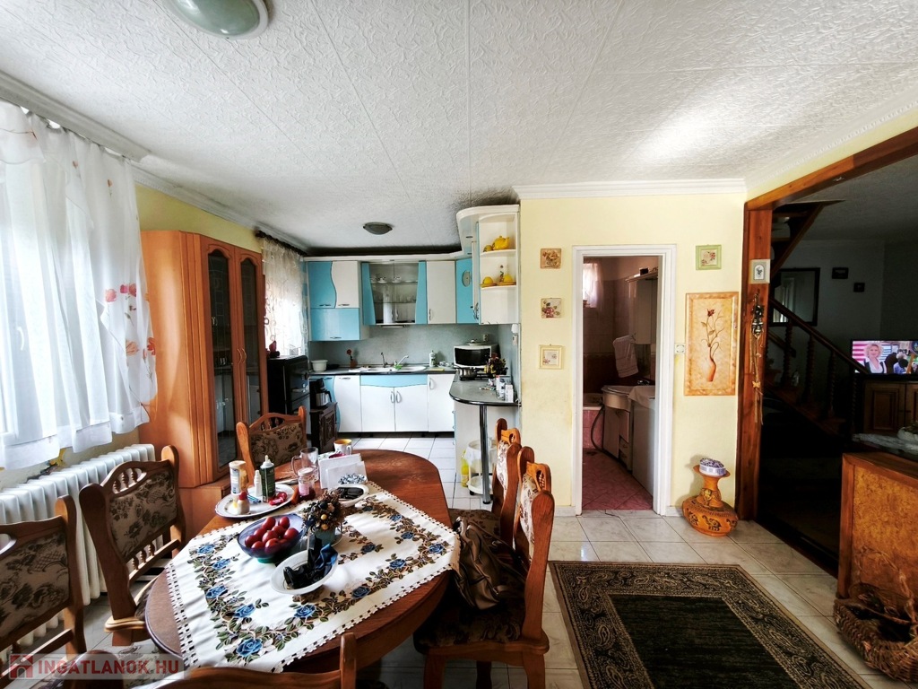 Nyíregyháza közelében eladásra kínálunk egy 90 m²-es, szigetelt, szintes családi házat, melynek teljes alapterülete alatt pince található. Itt kapott helyet a vegyestüzelésű kazán, de az ingatlan gázcirkó fűtéssel és villany kandallóval is rendelkezik.