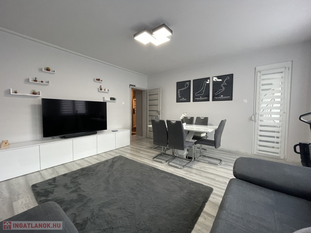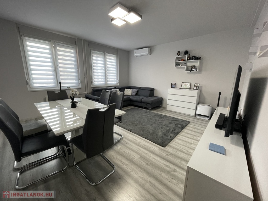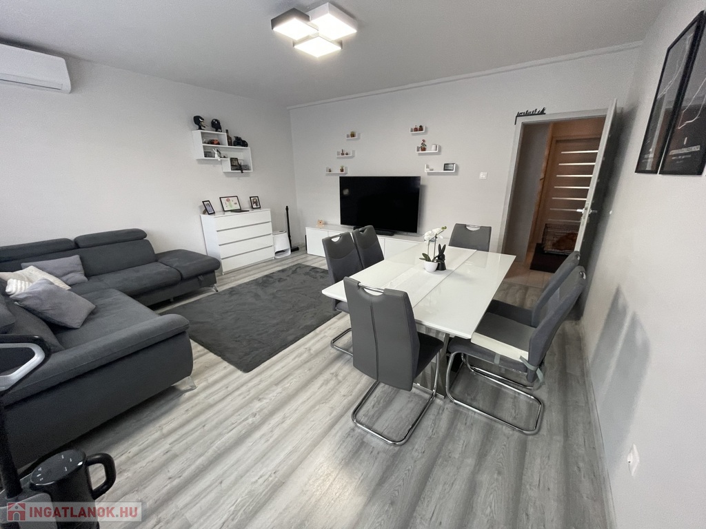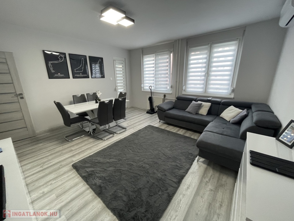 Nyíregyháza belvárosának szívében, a Korzó üzletház közvetlen szomszédságában eladó egy első emeleti, 87 m²-es, tágas kialakítású, három szoba + nappalis, erkélyes lakás, amely vezeték szintig felújított állapotban várja új tulajdonosát. Az ingatlan igényes, egyedi tervezésű, gépesített konyhabútorral, minőségi burkolatokkal és prémium beltéri ajtókkal rendelkezik, valamint három darab klímaberendezés gondoskodik a komfortos hőérzetről. A műanyag nyílászárók redőnnyel és reluxával felszereltek, a szigetelt, téglaépítésű társasház pedig rendezett, csendes környezetet biztosít. A lakásban négy nagyméretű, beépített szekrény található, melyek a vételár részét képezik. Fenntartási költsége rendkívül kedvező, a közös költség mindössze 7.000 Ft, ami a nagy alapterülethez képest különösen előnyös. Kiváló elhelyezkedésének köszönhetően nemcsak otthonnak ideális, hanem irodai használatra vagy befektetési célra is tökéletes választás, hiszen a belvárosi lokáció hosszú távon is értékálló. Energetikai besorolás: BBAz ingatlan azonosítója: 99582Érdeklődni: +36702560693 Az ingatlan azonosítója: 99582 Érdeklődni: +36702560693
