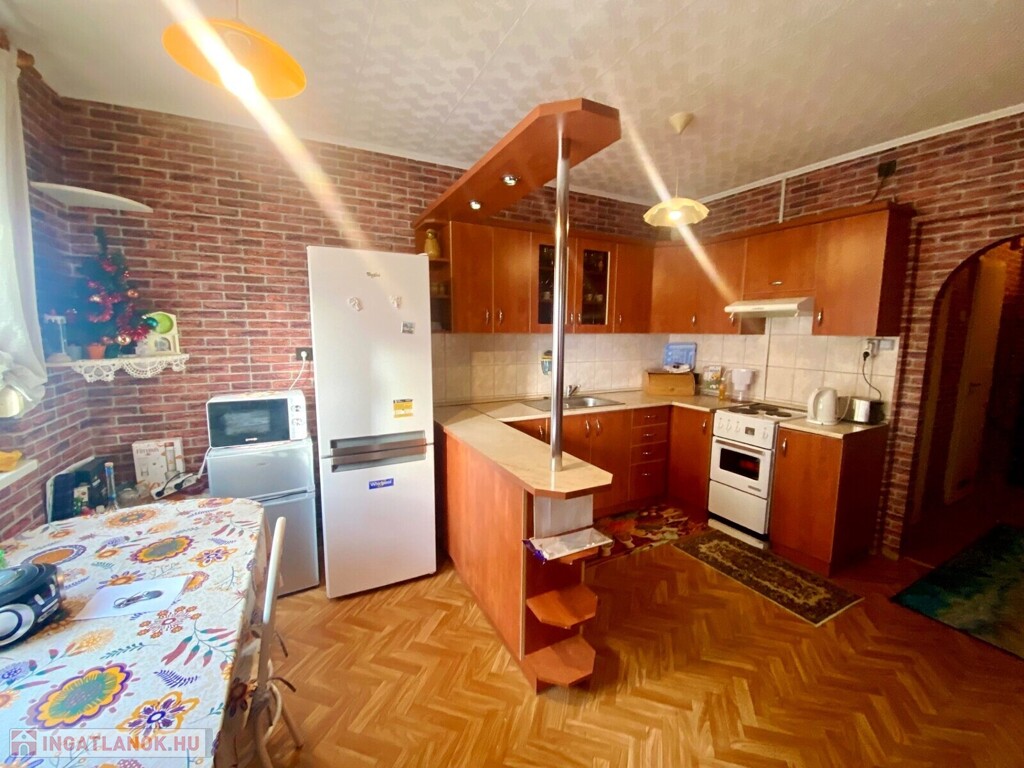 A vételár tartalmazza a képeken látható teljes bútorzatot és a teljes gépesítést is, beleértve a hűtőszekrényt és a mosógépet.