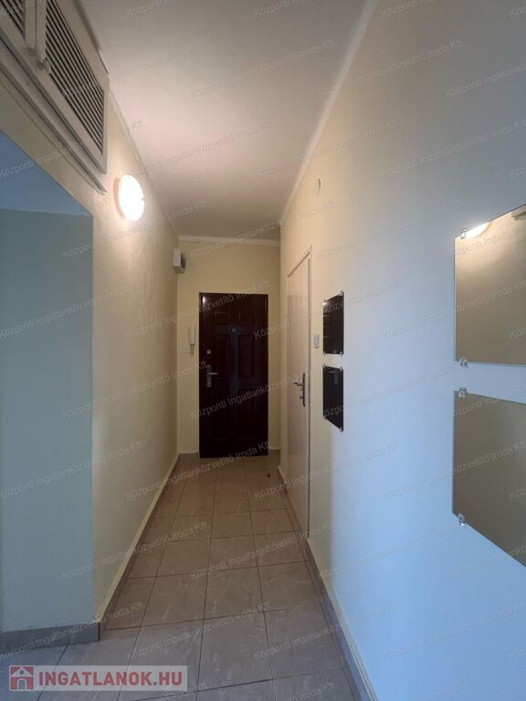 A szoba szőnyegpadlóval, a többi helyiség járólappal burkolt. Az ablakok műanyagra lettek cserélve, redőnnyel felszereltek, a bejárati ajtó korszerű, több ponton záródó ajtó.