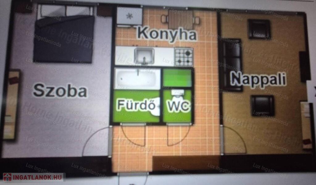 - Az egyik szobában pár éve új parketta került lerakásra, míg a másikban jó állapotú padlószőnyeg található.