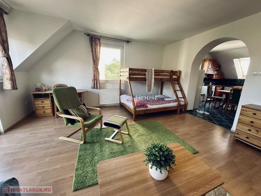 Az ingatlan elosztását tekintve konyha-étkező, nappali, fürdő,-wc, spájz, előtér valamint a tetőtérben kialakításra került 1 hálószoba+külön wc.